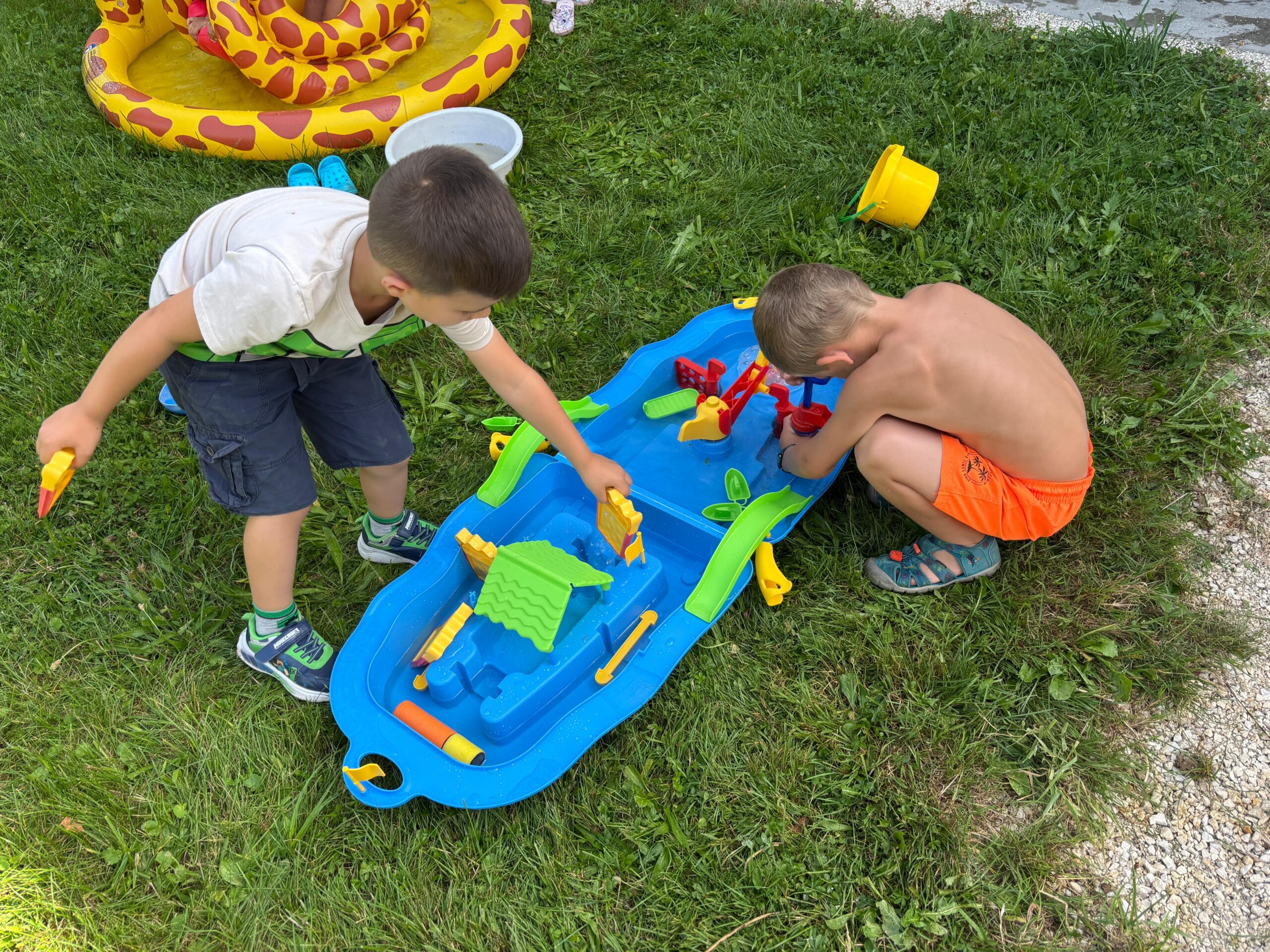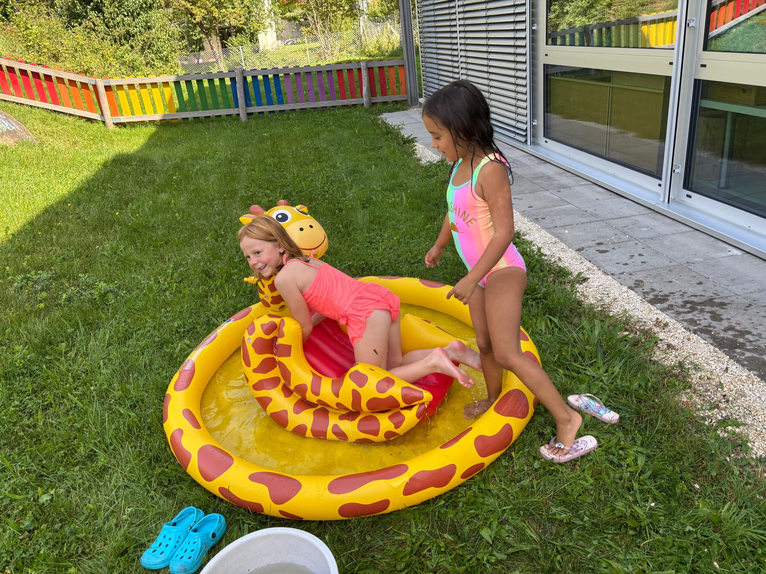 Ein Highlight ist unser neuer Spielplatz, den die Kinder mit viel Freude entdecken. Trotz des sehr heissen Wetters haben die Zyklus 1 Kinder bereits viele fröhliche Momente erlebt – beim Spielen draussen und beim erfrischenden Wasserspiel.