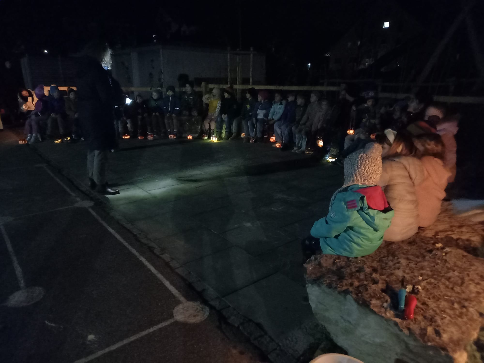 Schliesslich trafen sich alle beim Schulhaus, wo gemeinsam schöne Lieder gehört und gesungen wurden. Die leuchtenden Räbeliechtli, die Musik und das fröhliche Beisammensein weckten die Vorfreude auf die bevorstehende Vorweihnachtszeit.