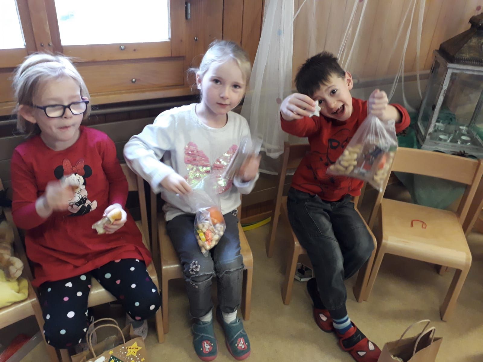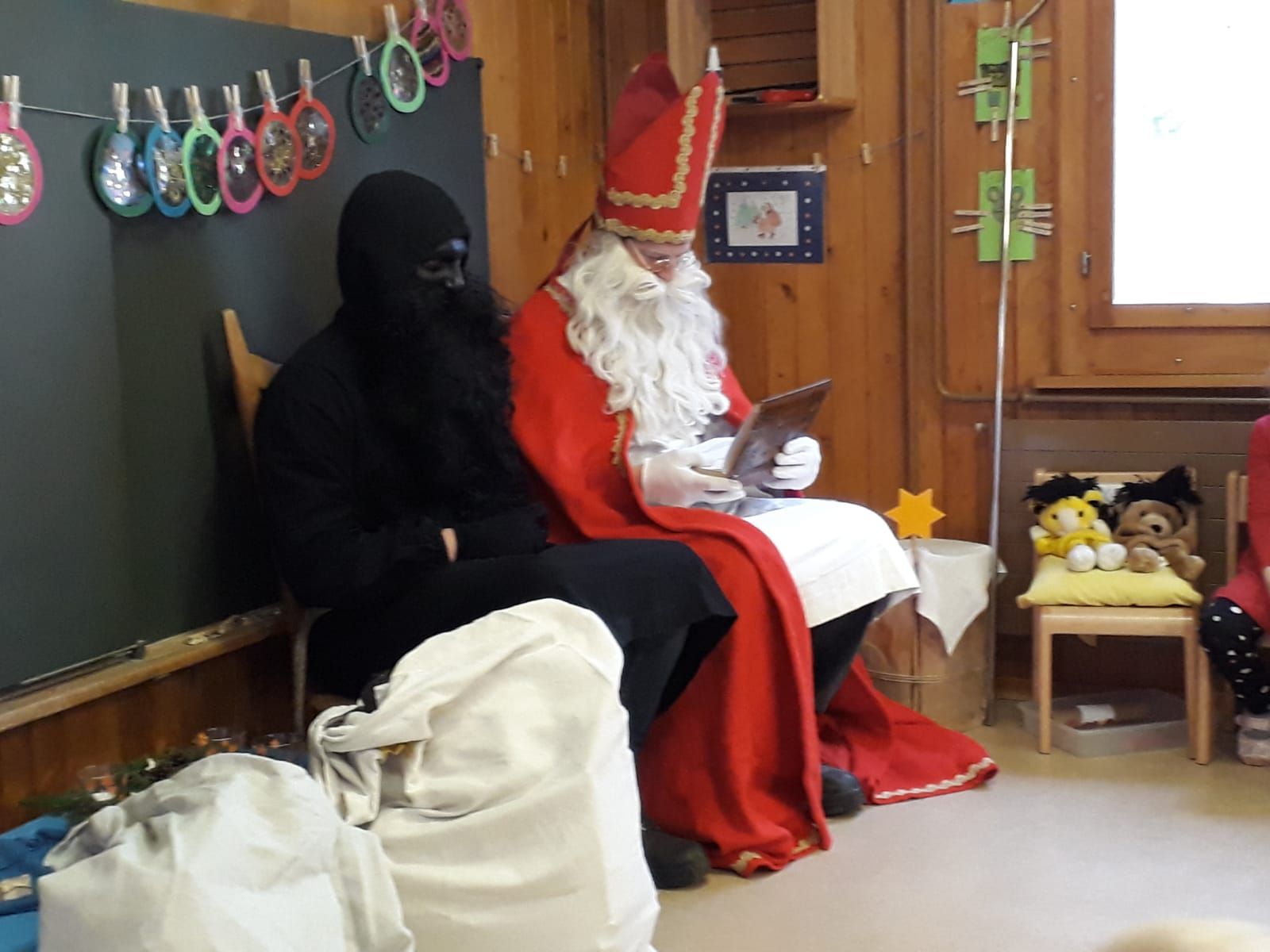Danke lieber Schmutzli, dass du das Loch im Sack flicken wirst. Und danke, lieber Samichlous, wir wussten, du musstest noch viele weitere Kinder besuchen, aber für uns hast du dir viel Zeit genommen und wir haben diese mit dir offensichtlich sehr genossen.