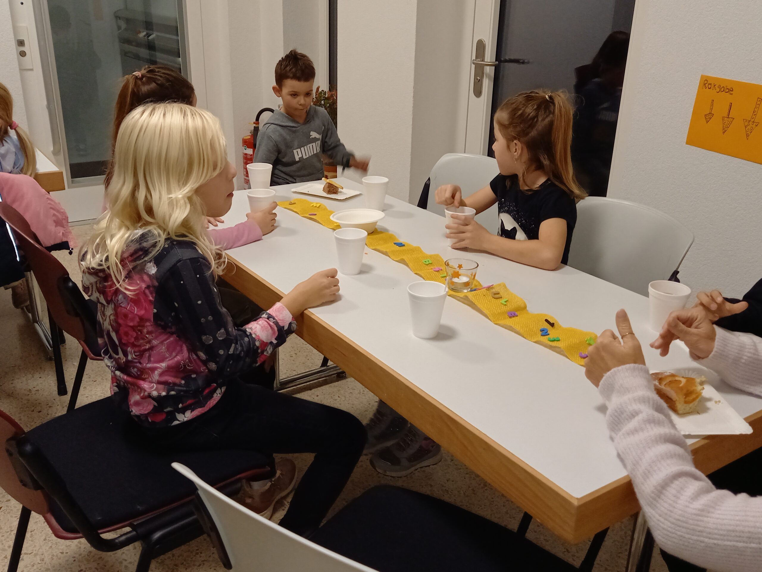 Mit grosser Vorfreude erwarteten wir den Freitagabend, 08. November 2024. Die Kinder haben in der Schule Laternen gebastelt, welche ihnen und ihren Familien den Weg durch die dunkle Nacht leuchteten. So hatten wir am Abend der Schweizer Erzählnacht auch noch einen kleinen Laternenumzug im Dorf. Nachdem alle Eltern und weitere Gäste einen Platz in der Turnhalle gefunden hatten, eröffnete der Schulchor unter der Leitung von Barbara Dollinger den Abend. Die Schulleiterin Nicole Ganz, erwähnte in ihrer Rede, wie wichtig das Geschichtenerzählen sei. So kündete sie den Kinderbuchautoren Daniele Meocci an. Er fesselte die jungen Zuhörer mit einer interaktiven Lesung aus „Bruno das Umarmehörnchen“ und dem Abenteuer „Wichtel in Not“, das speziell für die älteren Kinder der 4. bis 6. Klasse gedacht war. Der Verein Family Plus organisierte ein gemütliches „Bibliothekskaffee“ mit einem reichhaltigen Kuchenbuffet. In der Pause konnten die Kinder den Gästen die neue Schulbibliothek zeigen. Die professionelle Märchenerzählerin Rita Ackermann begeisterte mit fantasievollen Geschichten und entführte Gross und Klein in die Welt der Märchen. Es war ein sehr schöner, Geschichten reicher Abend mit tollen Gästen.