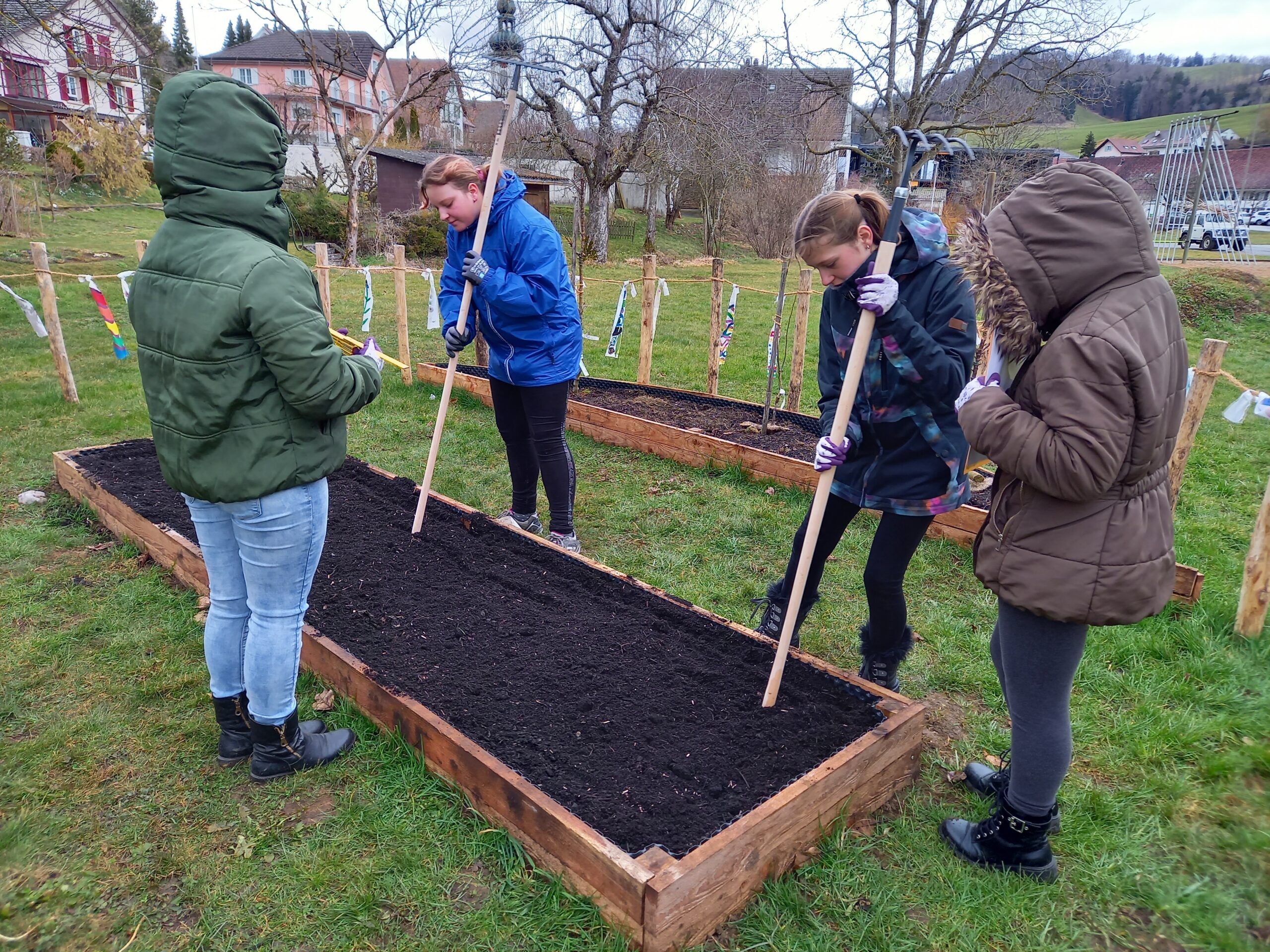 Zu guter Letzt halfen ein paar fleissige Schülerinnen und Schüler aufzuräumen und die Geräte zu reinigen. Alles muss seine Ordnung haben, auch unser Gartencontainer. Es war wiederum ein gelungener Morgen und wir freuen uns bereits auf schöne Stunden im neuen Weidehaus.