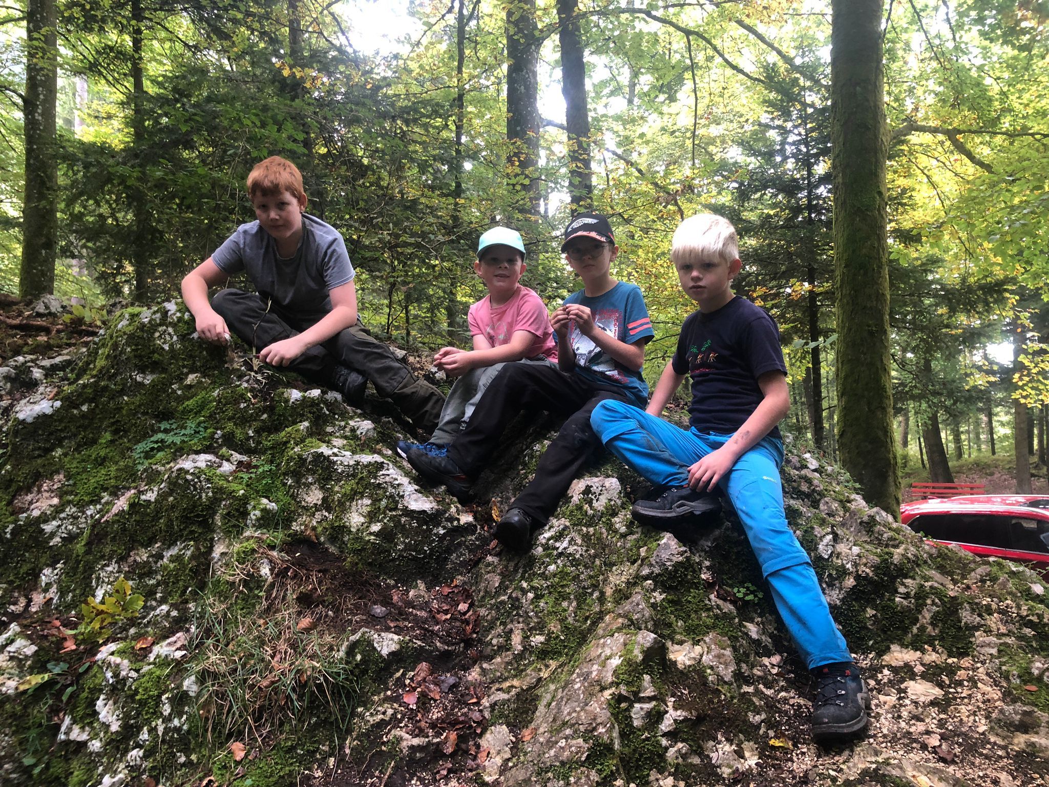 In der Mittagspause wird gebrätelt, gegessen, gespielt, geklettert, gelacht, gerangelt…. einfach schön dieses gemeinschaftliche Zusammensein. Vertieft in die jeweilige Tätigkeit, kommt der Aufbruch hinab nach Balsthal einigen fast zu früh. Der Wald mit seinen vielfältigen Möglichkeiten wird immer wieder aufs Neue geschätzt.