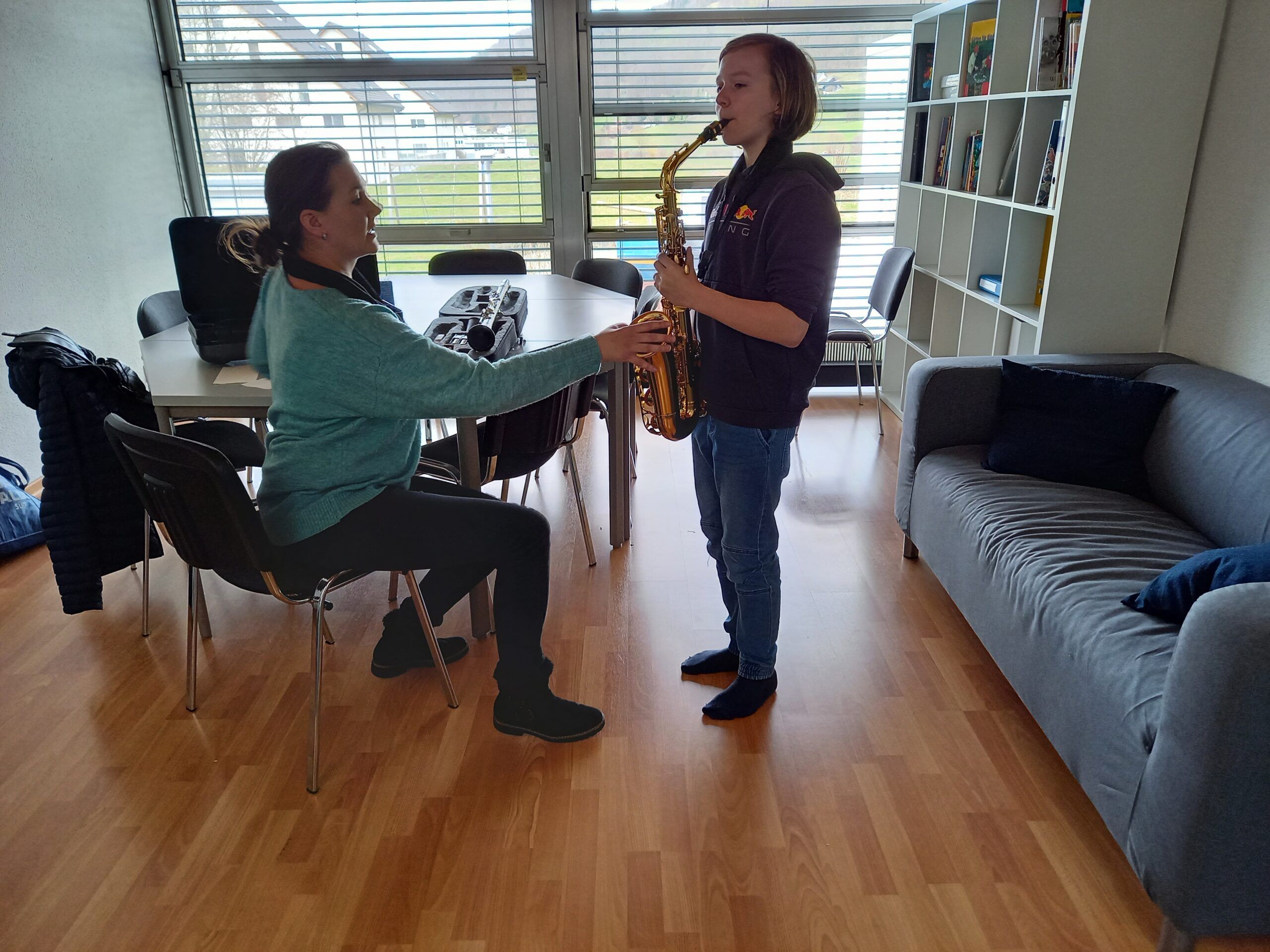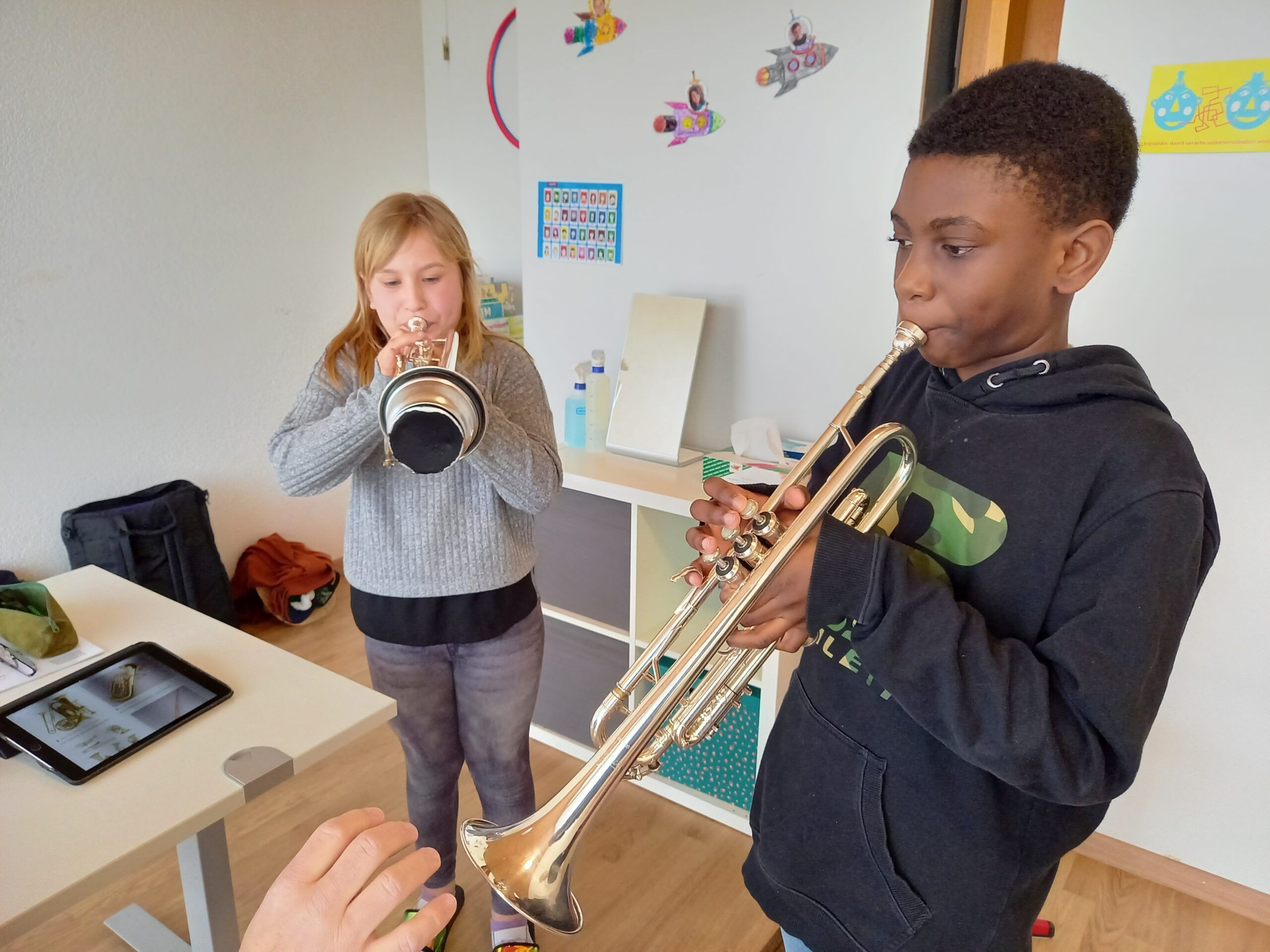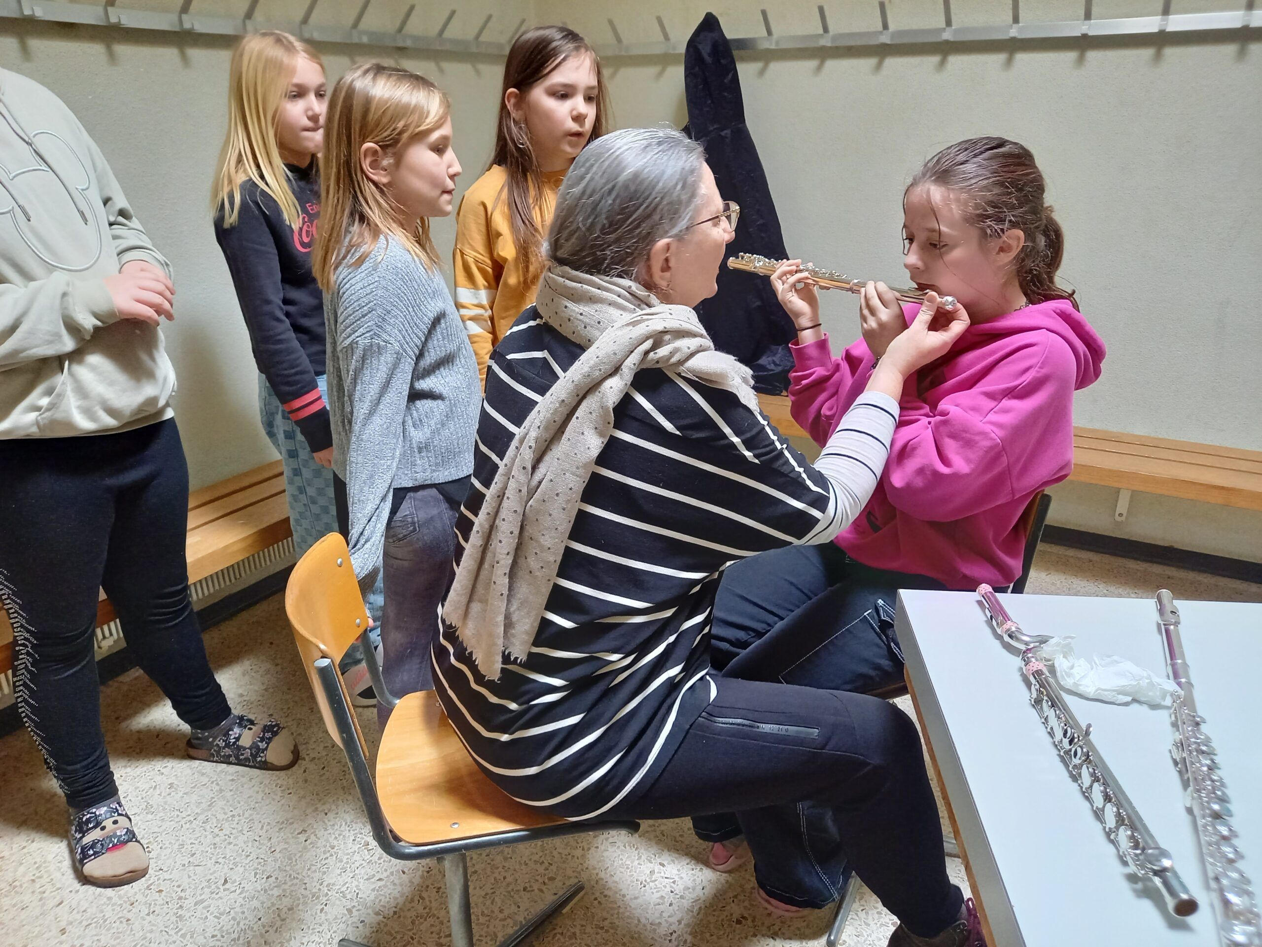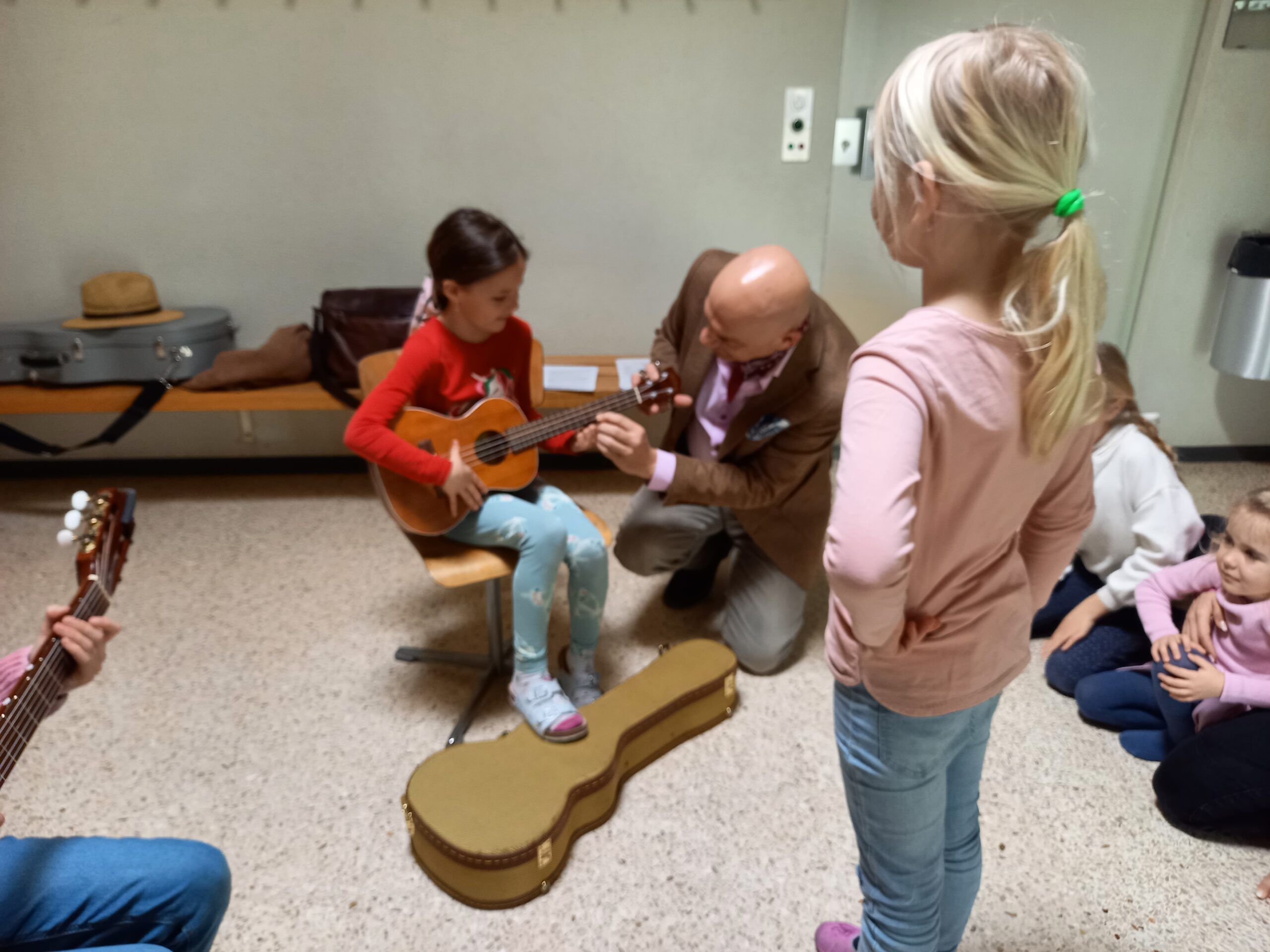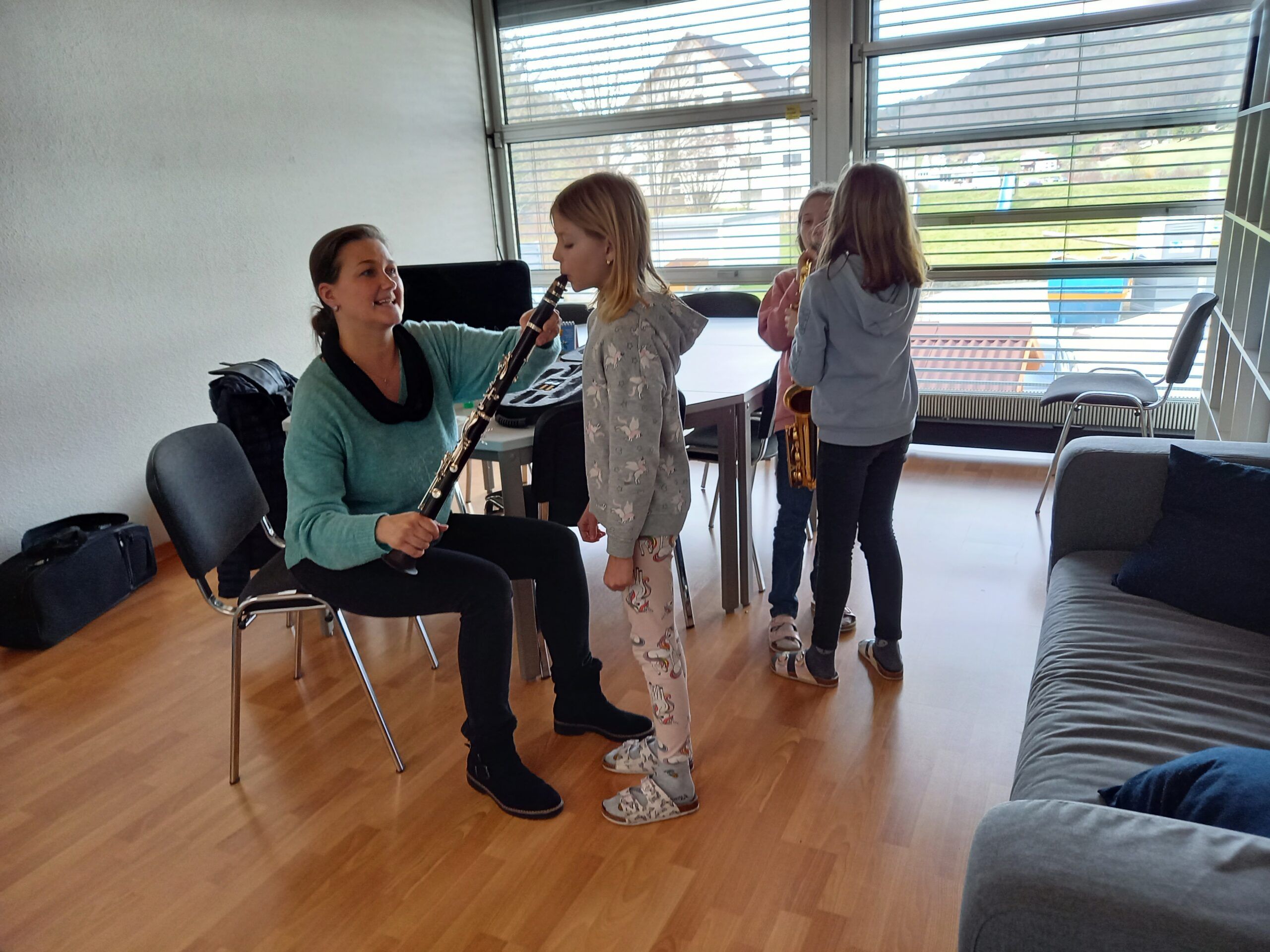 Heute konnte die Musikschule ihr Angebot in der Turnhalle den Kindern des grossen Kindergartens bis zur 6. Klasse vorstellen.
