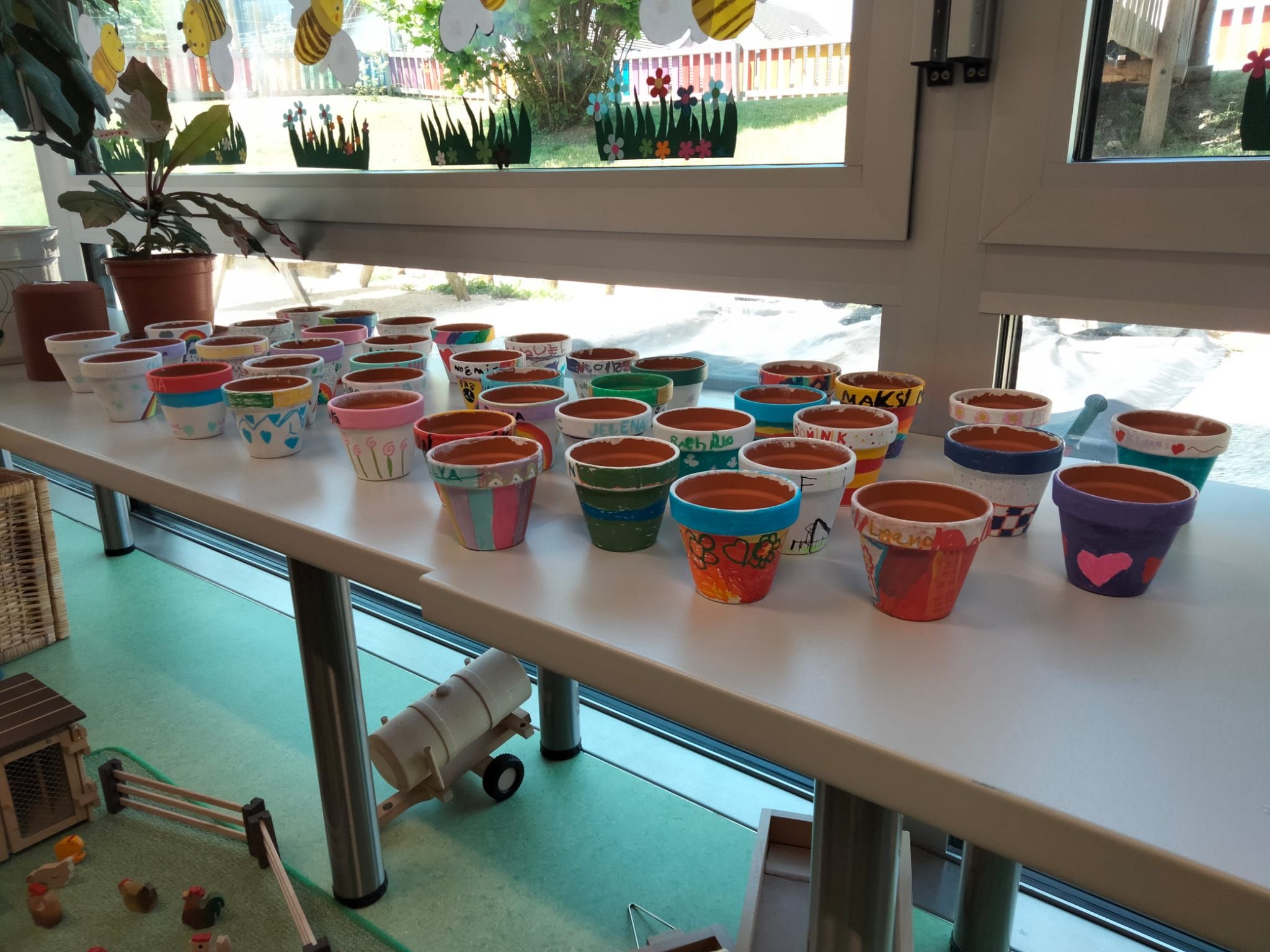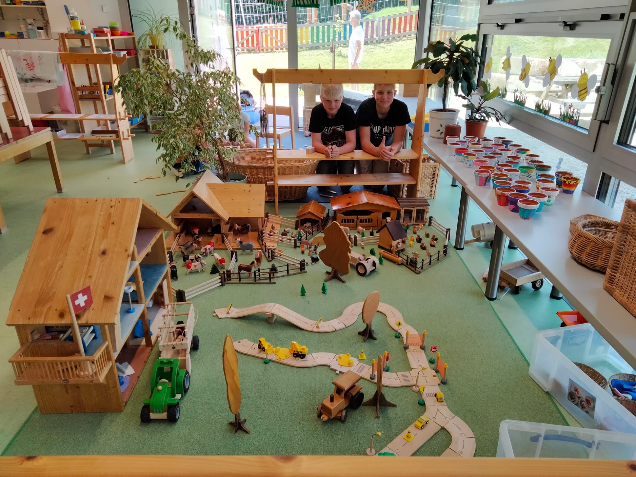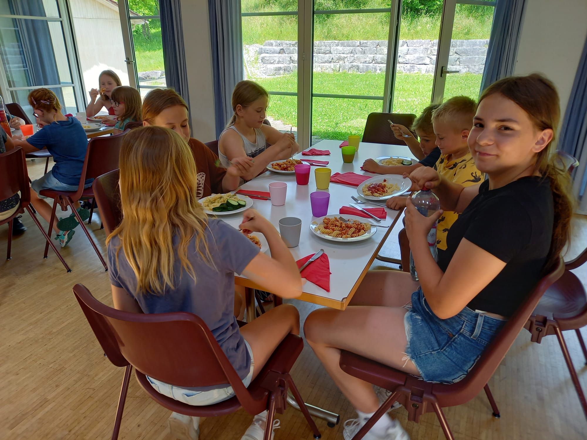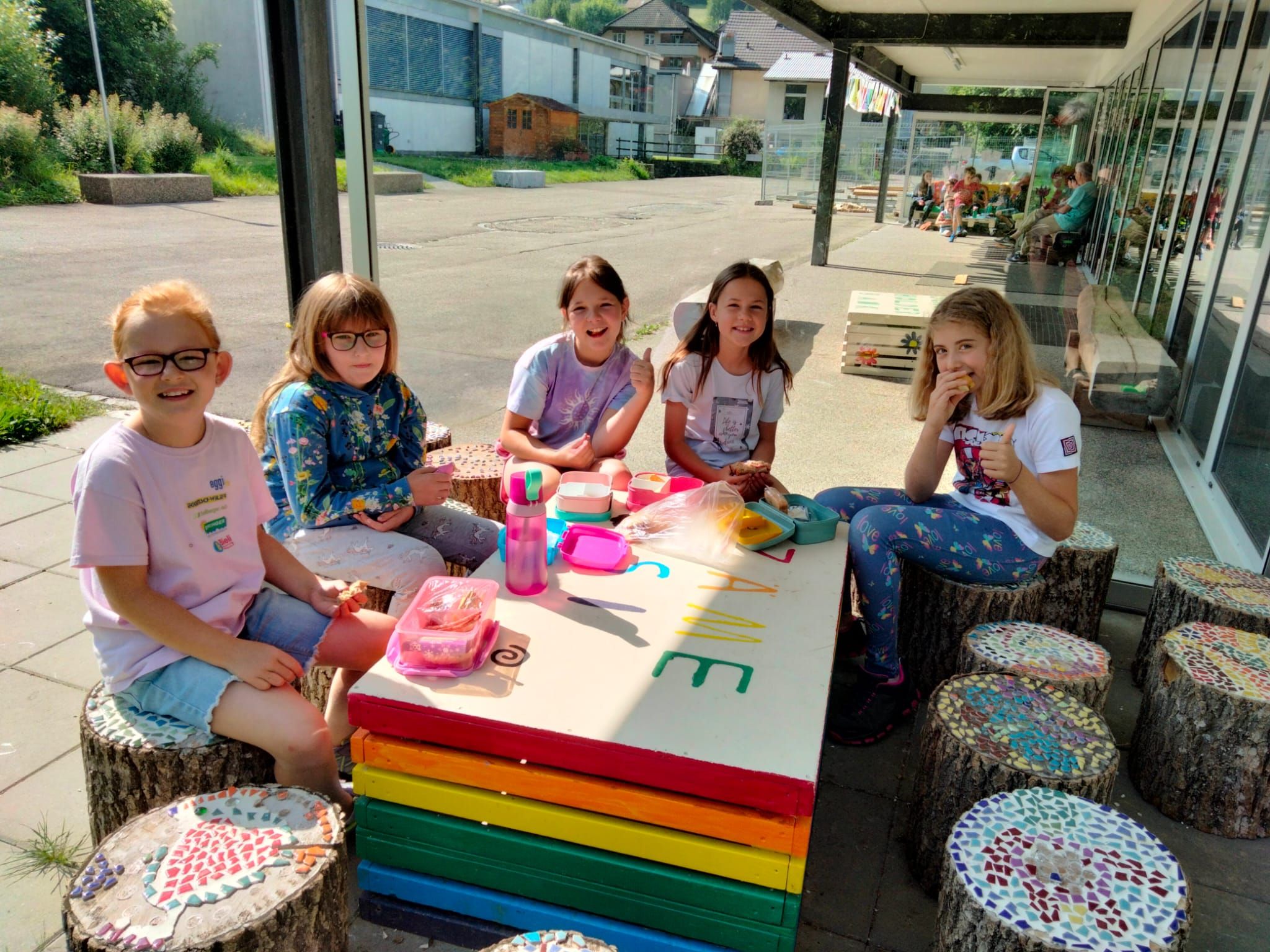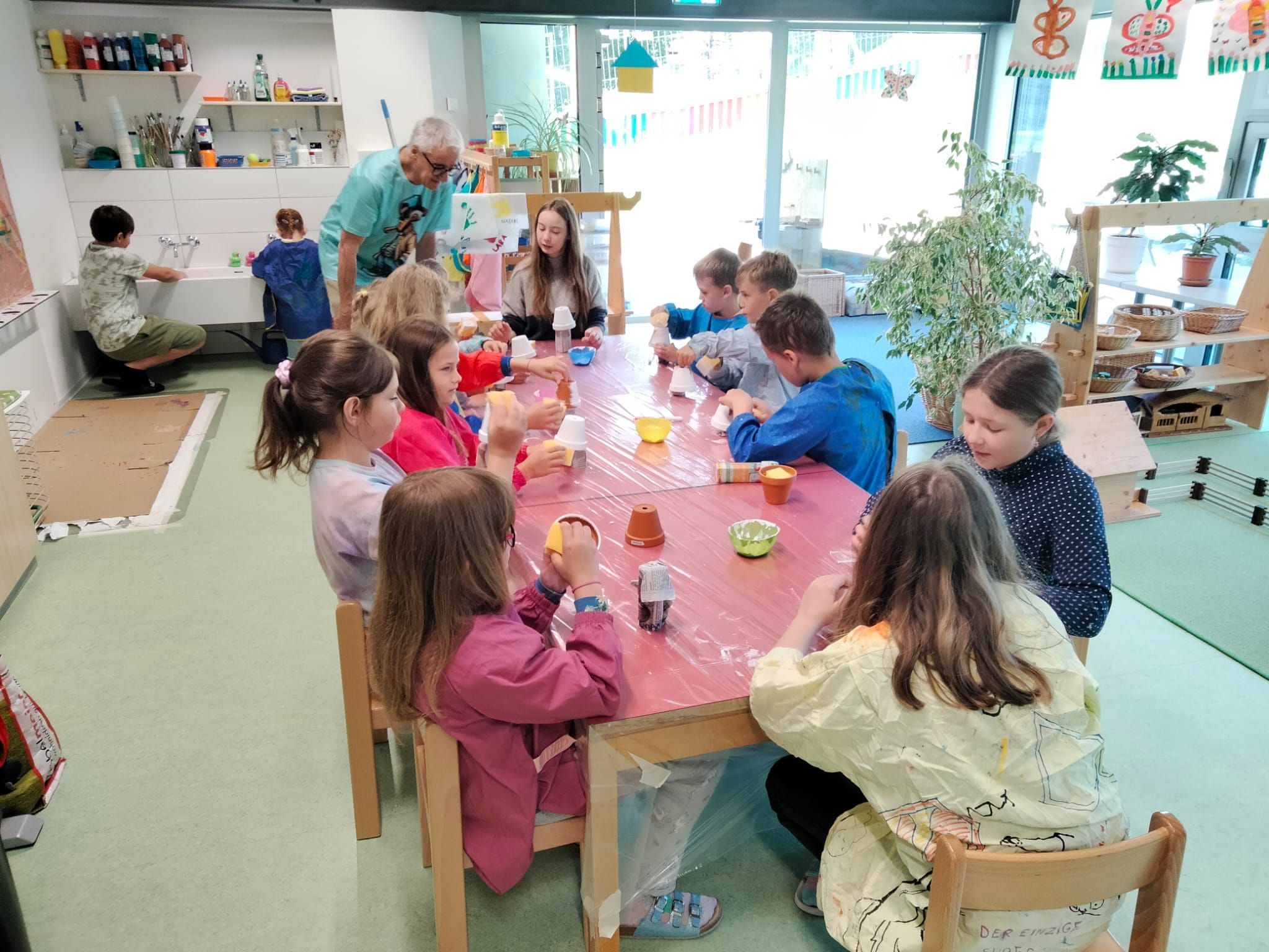 In der diesjährigen Projektwoche, die vom 10. bis 13. Juni ging, haben wir das Jassen erlernt. Mit drei großartigen und abwechslungsreichen Ateliers machte die Projektwoche einen grossen Spass. Zuerst sangen wir die Schulschluss – Lieder und danach wurden wir in drei Gruppen aufgeteilt, da wir sonst viel zu viele Kinder gewesen wären. In einem der Ateliers haben wir die Blumentöpfe bemalt, welche am Schulschlussfest als Dekoration auf den Tischen stehen werden und wir haben auch die Fahnen mit unseren Händen bedruckt. Diese Fahnen werden draussen beim Spielplatz stehen. Dieses Atelier leitete Frau Nussbaumer und Herr Wyss. Das zweite wurde von Frau Jäggi und Frau Müller geleitet. Da verfeinerten wir unsere Jass – Künste und lernten die Jass – Punkte auf der Tafel aufzuschreiben. Das letzte Atelier war bei Frau Henz und Frau Allenspach. Dort machten wir ein Jasskarten – Etui und wir filzten ein Zeichen unserer Wahl darauf. Natürlich unterstützten die Grösseren die Kleineren. Am Freitag krönten wir unsere Projektwoche mit einem Jass – Morgen, an welchem einige SeniorInnen aus dem Dorf teilnahmen. Am Mittag gab es sehr leckere Nudeln mit Tomatensauce. Danach ging es ins schöne, heisse Wochenende.