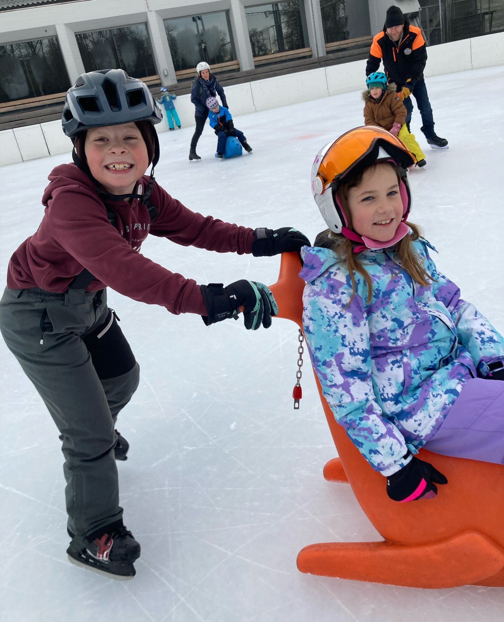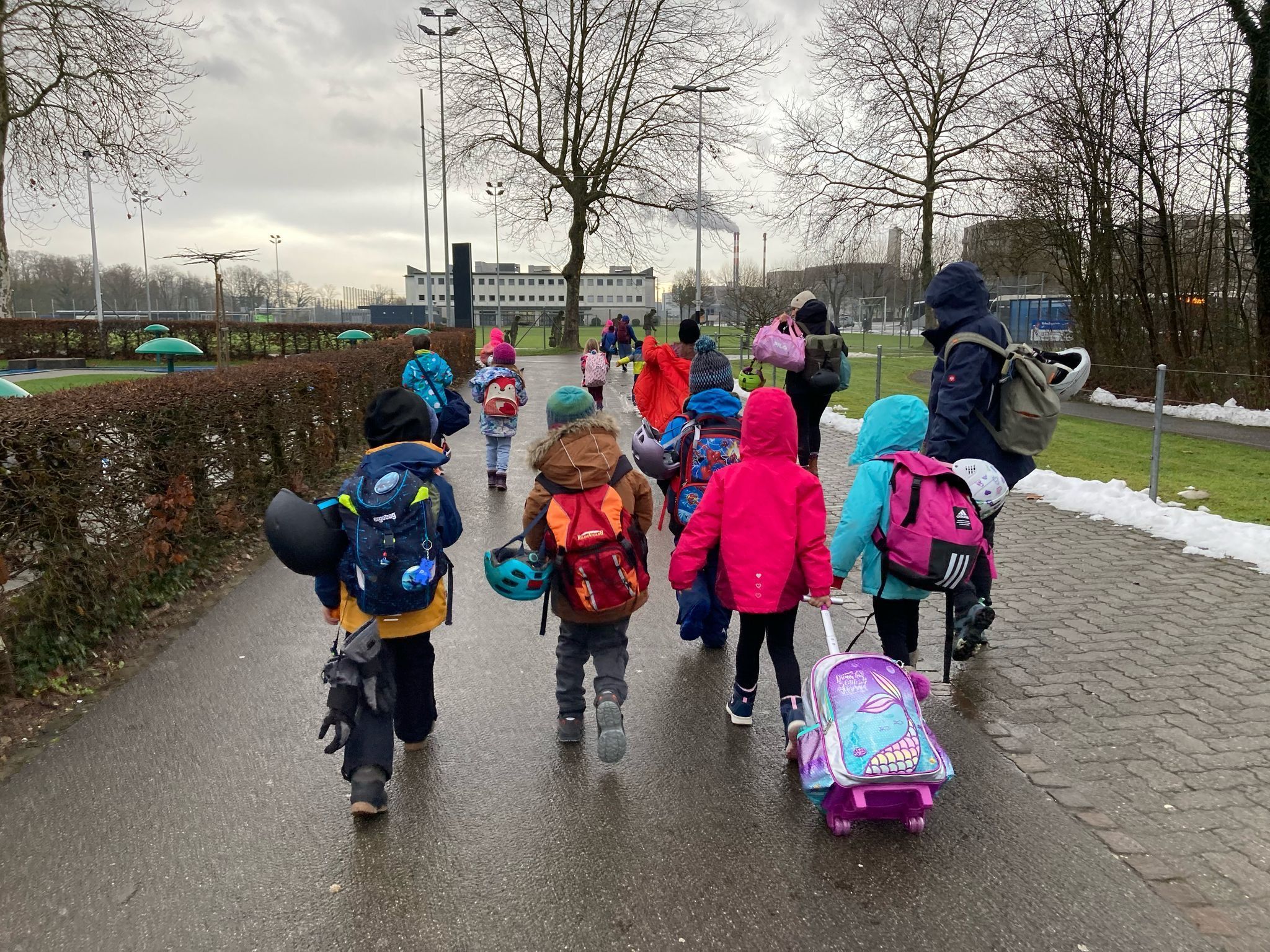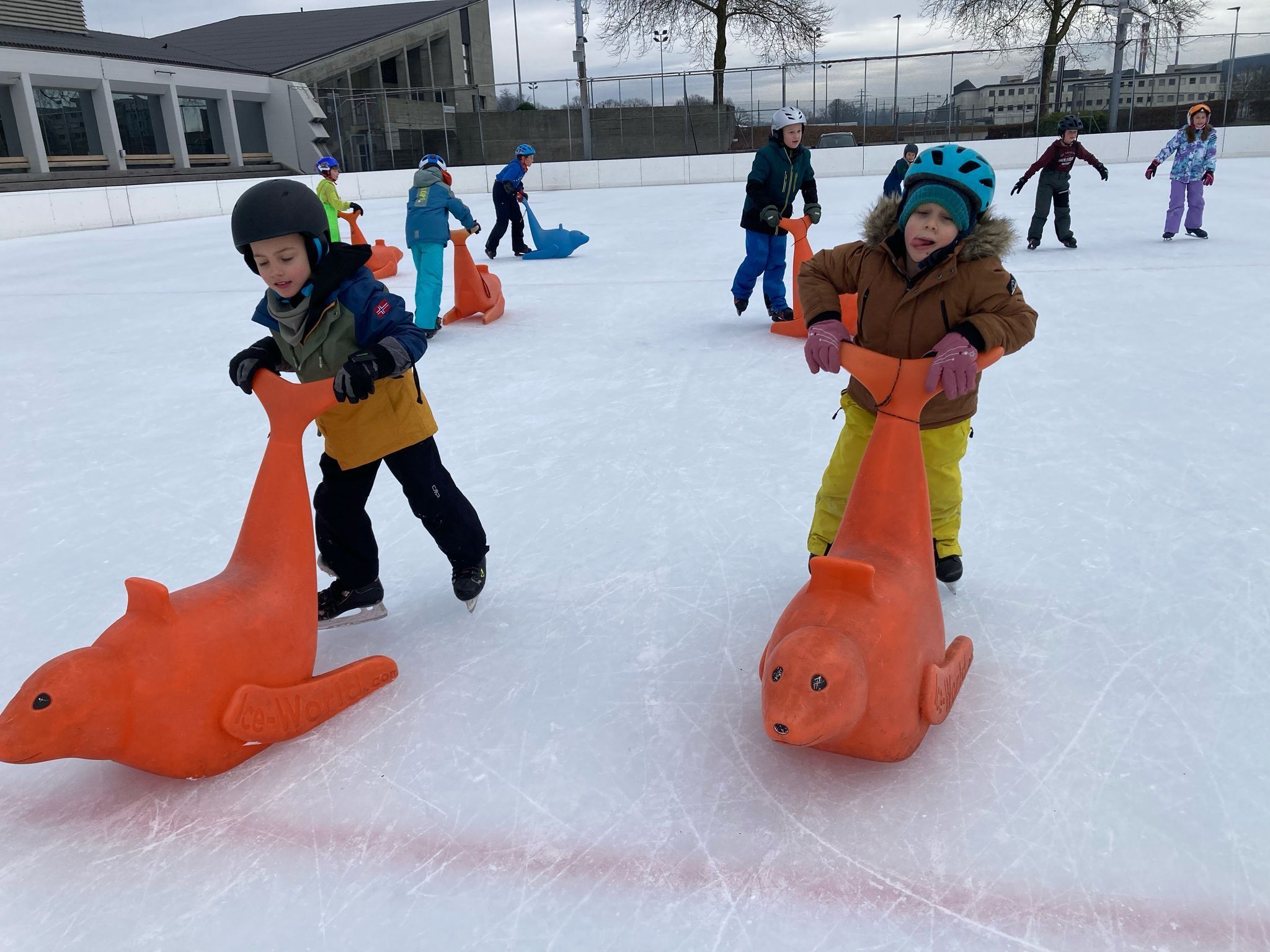 Jedes Jahr nehmen wir am Sporttag teil. Meistens besuchen wir am ersten Tag nach den Weihnachtsferien das Sportzentrum in Zuchwil. Auf dem Dorfplatz trafen wir uns und stiegen direkt in den gebuchten Reisecar. In Zuchwil angekommen holten wir die Schlittschuhe für die Erwachsenen und für die Kinder. Das Schlittschuhfahren macht den Kindern immer sehr viel Spass. Zum Mittagessen gibt es jedes Jahr leckere Spaghetti mit Tomaten- oder Bolognesesauce. Als das Essen fertig war, warteten wir auf das OK der Bademeister. Im Hallenbad vergnügten wir uns auf der Wasserrutsche, dem Sprungbrett und spielten mit den verschiedenen Wasserspielzeugen. Doch wie jedes Jahr ging der Sporttag viel zu schnell vorbei.
