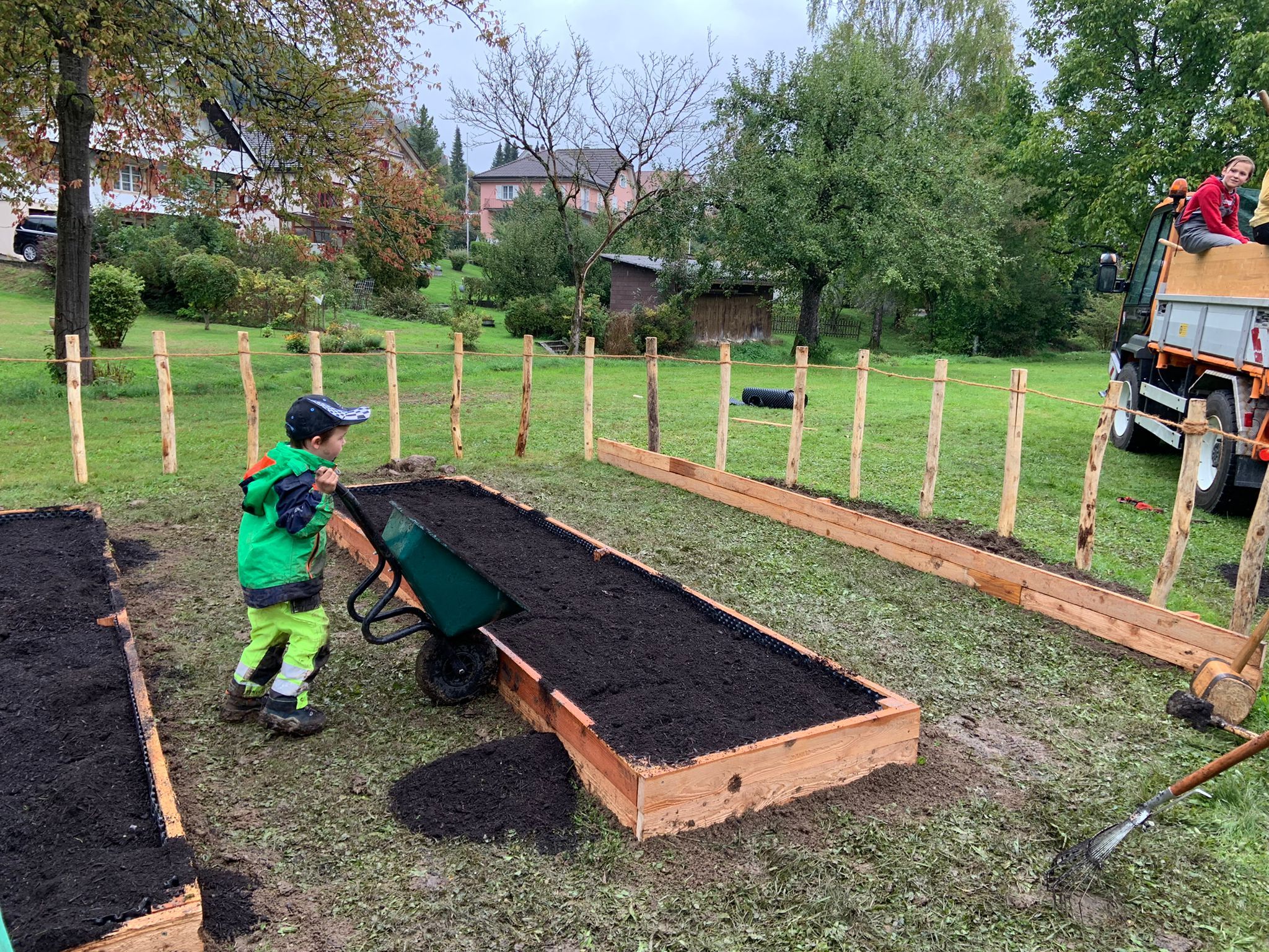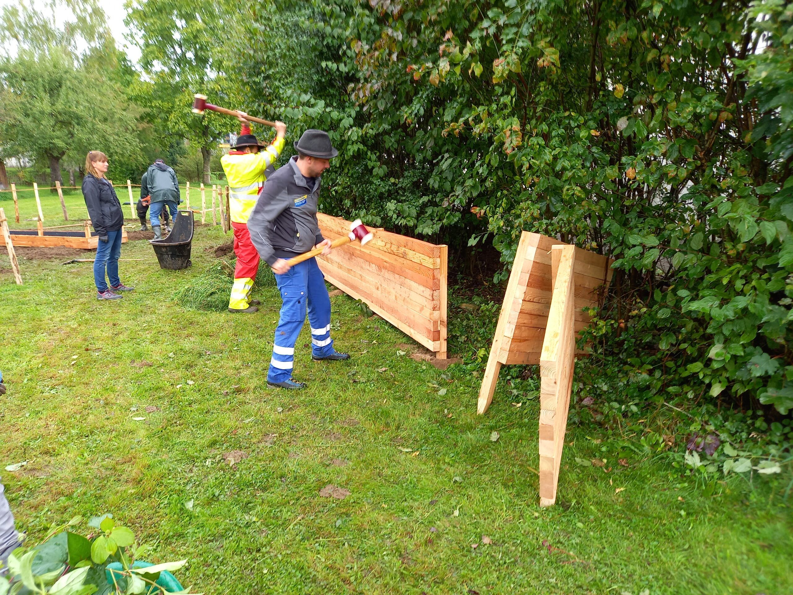 Die Liste der Arbeiten war lang: Gartenbeete bauen, Zaun setzen, Baum fällen, Hecke zurückschneiden, Kompostplatz bauen, Grünmaterial vorbereiten, Kompost ansetzen, Bandelis jäten, Weiherpflege, Wimpeln malen, Insektenhäuser bauen, Erde schaufeln…