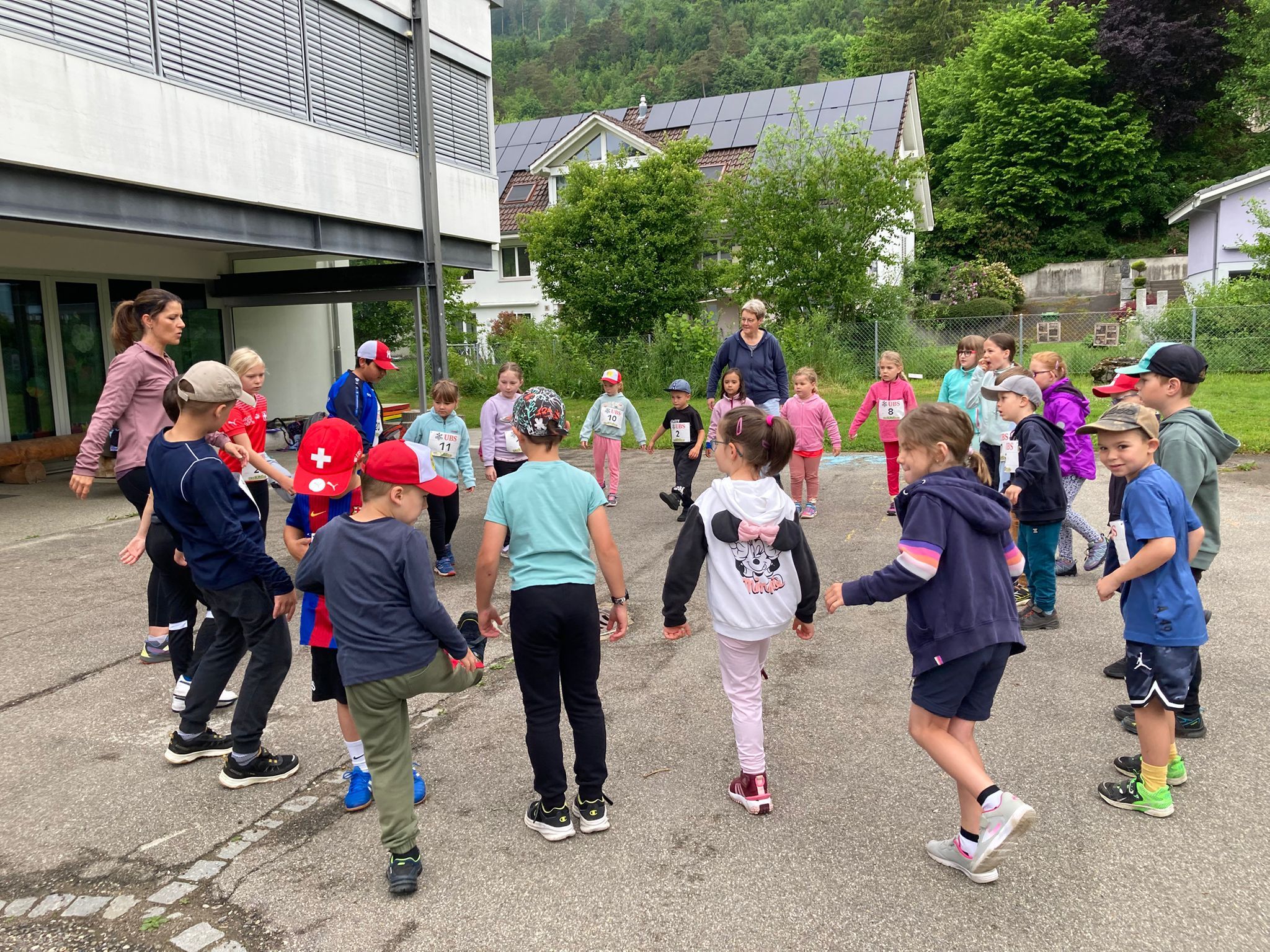 Trotz unbeständigem Wetter wagten wir es und führten den UBS KIDS CUP durch. Die Rechnung ging auf. Alle Disziplinen konnten im Trockenen bei angenehmen Temperaturen absolviert werden. Als Highlight stand ein Fussballturnier der ganzen Schule in altersdurchmischten Gruppen auf dem Programm. Kaum angekommen in der Turnhalle, prasselte ein Gewitter über das Dorf. Wir hatten ein grosses Wetterglück. Die Rangverkündigung konnte im Trockenen der Halle abgehalten werden.