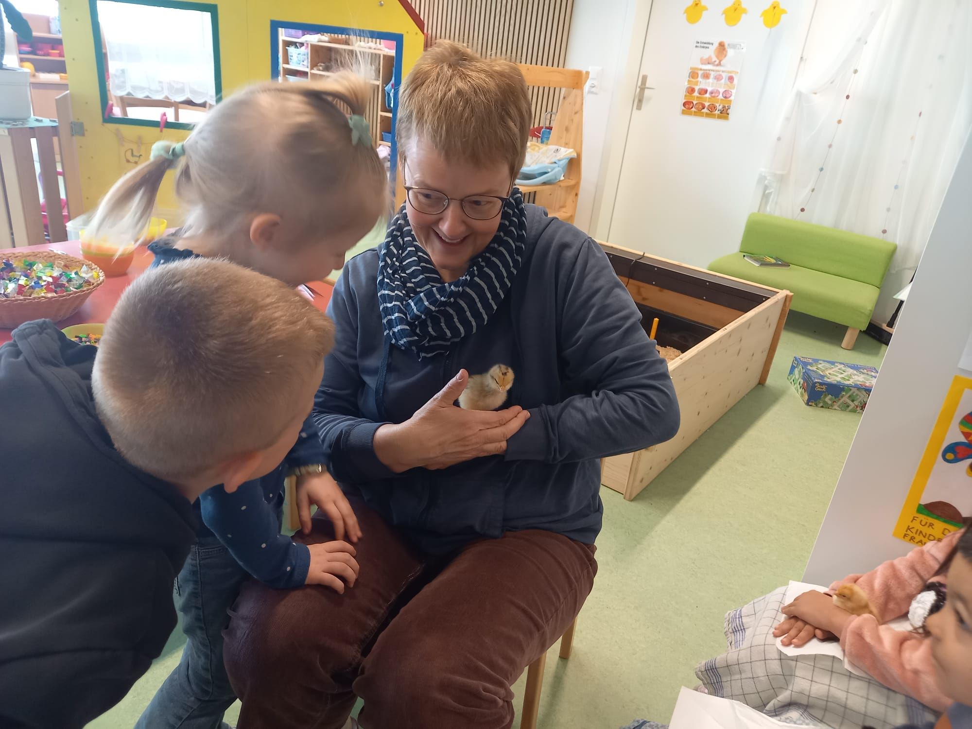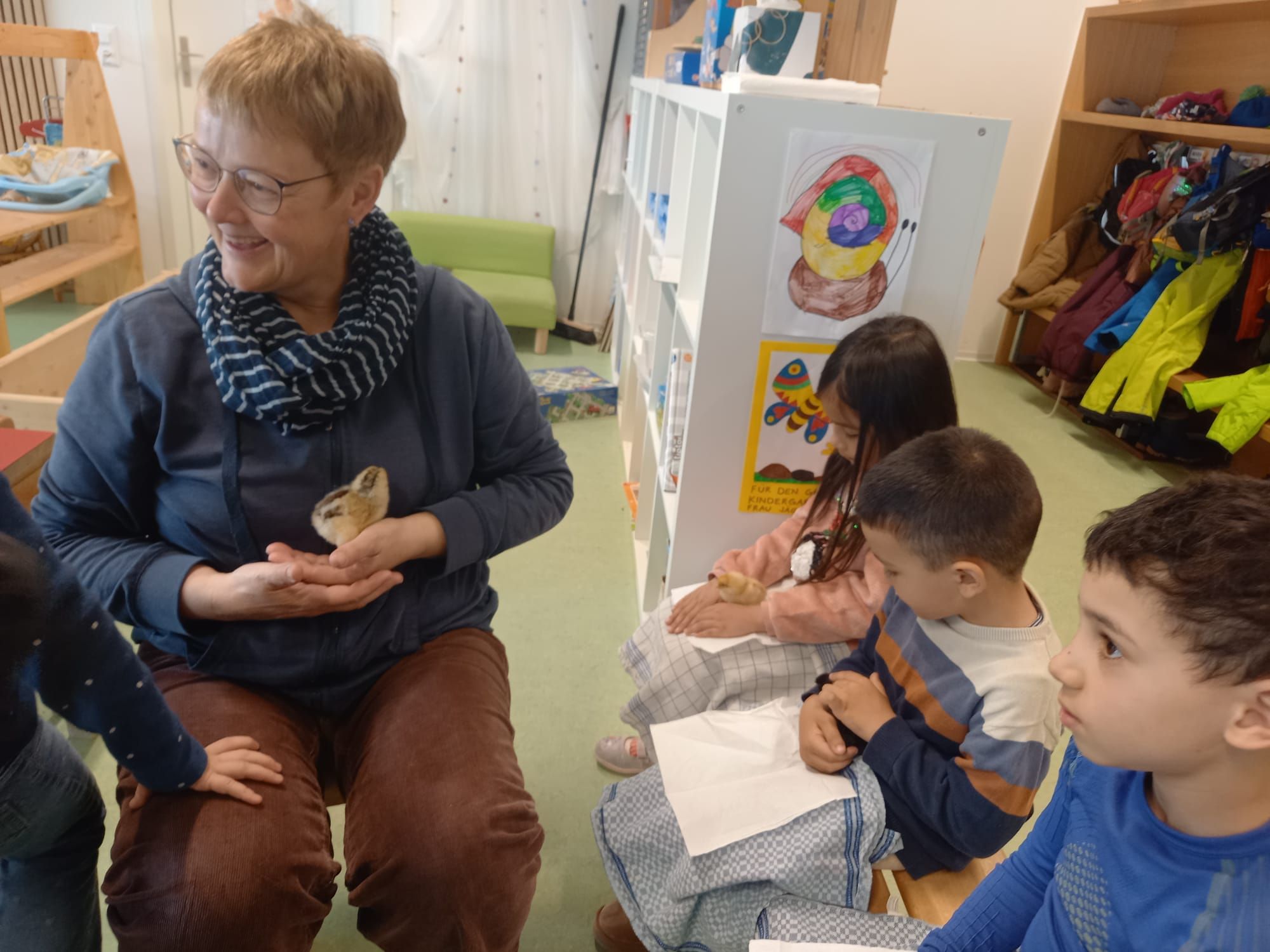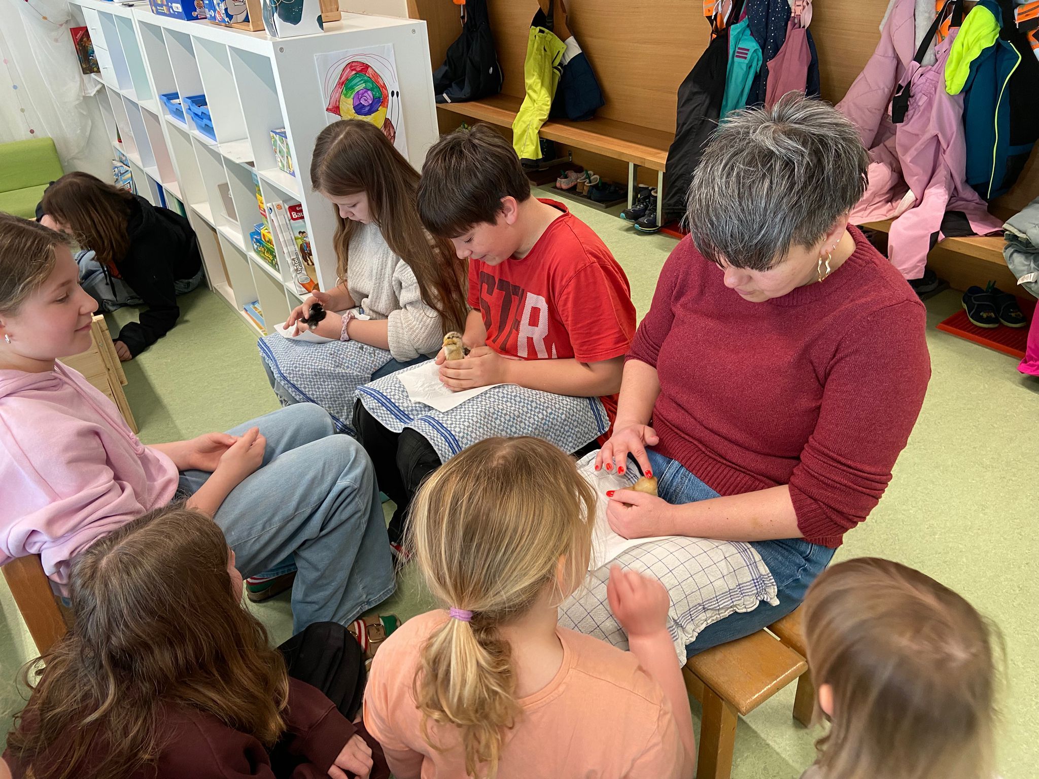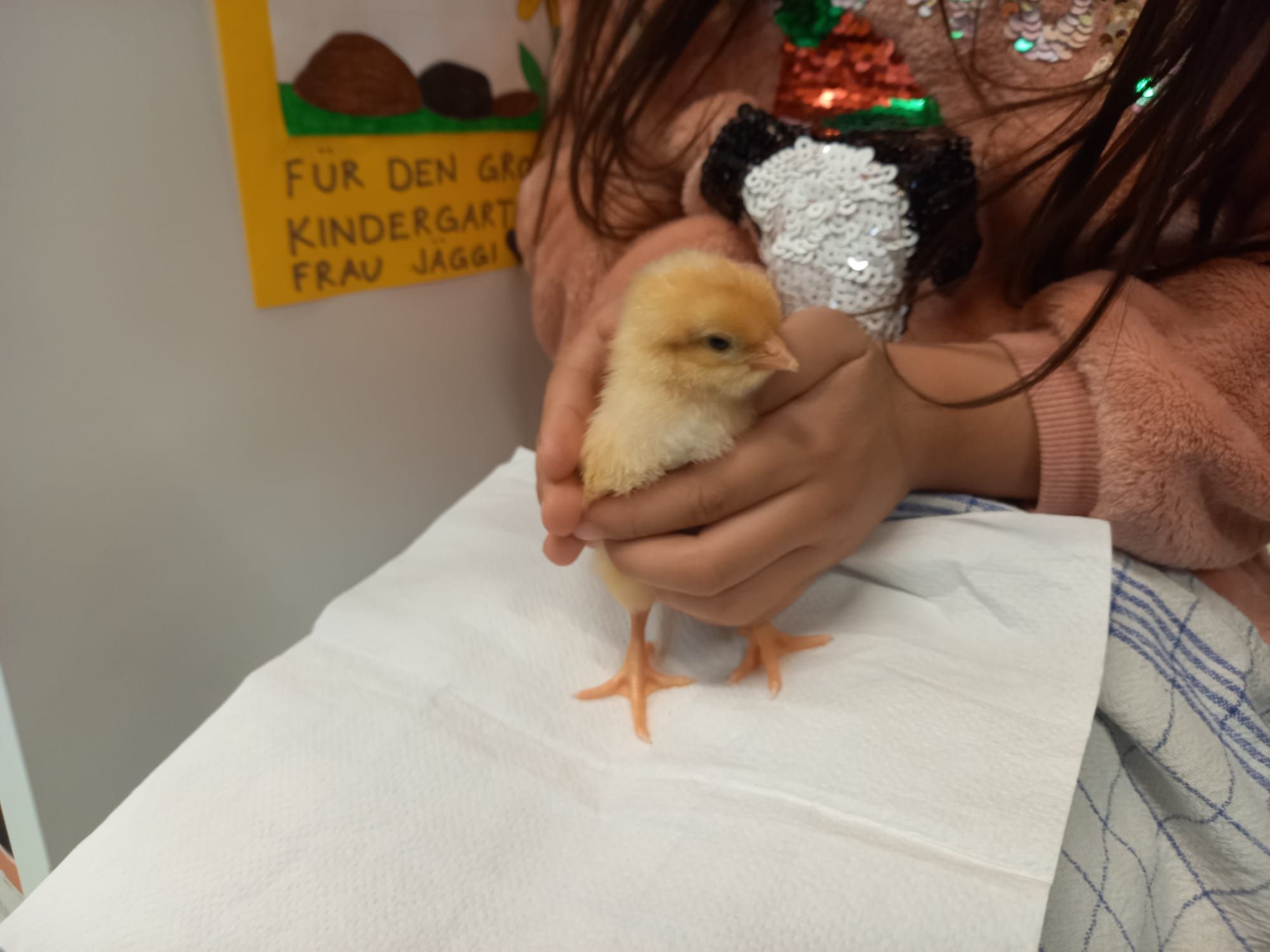 Seitdem herrscht im Kindergarten eine besondere Stimmung. Alle Schülerinnen und Schüler können die kleinen Flauschbällchen besuchen, auf den Schoss nehmen und vorsichtig streicheln. Die Küken bringen nicht nur Freude, sondern zeigen auch, wie spannend und wertvoll der Umgang mit Tieren ist.