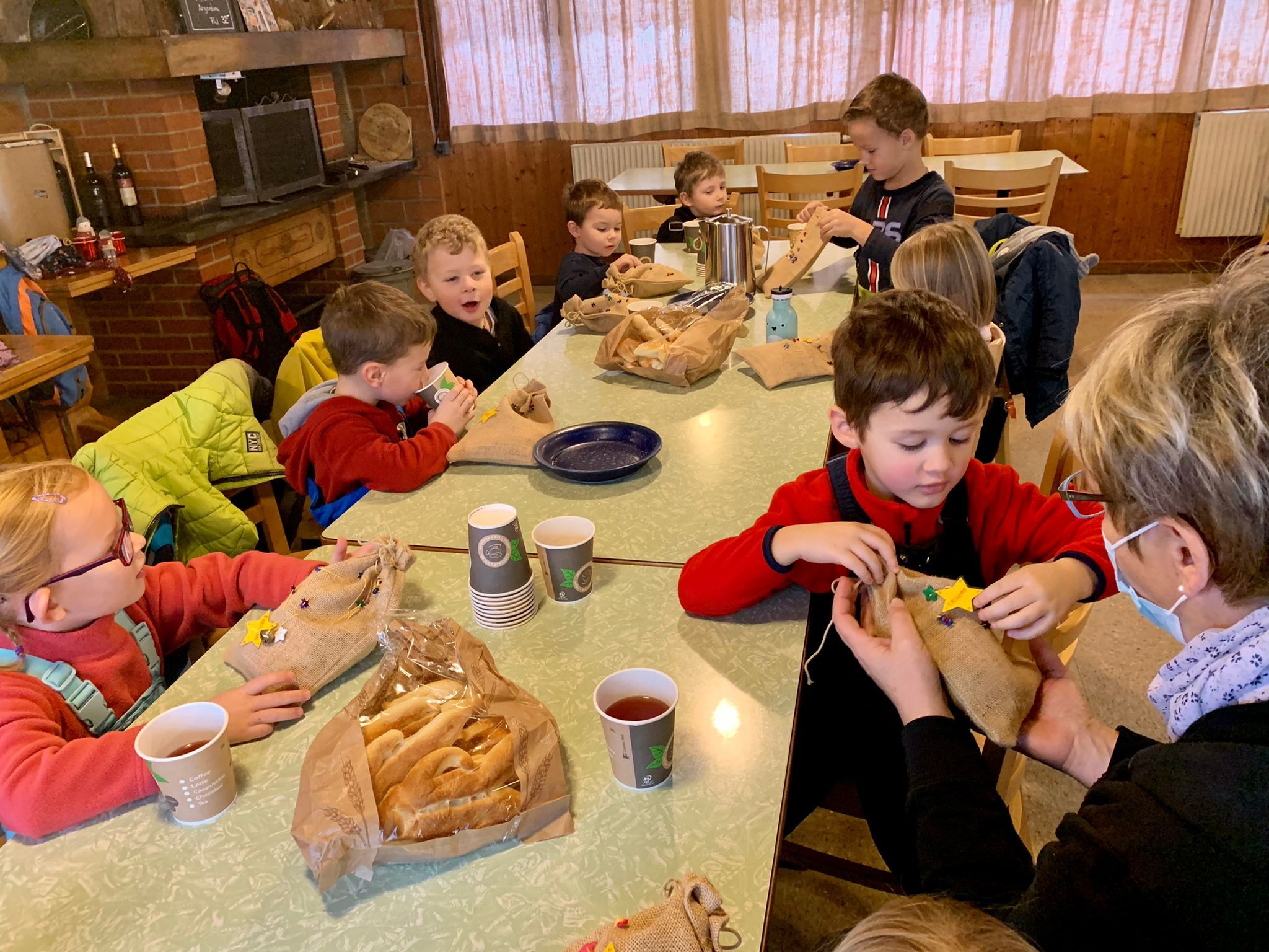 Am 6. Dezember ist es endlich wieder soweit. Die Kinder des Kindergartens und der 1.-3. Klasse machen sich auf den Weg, um den Samichlaus zu suchen. Corona bedingt müssen die Klassen ihr Glück gestaffelt versuchen. Es wird angestrengt Ausschau gehalten. Wo versteckt er sich bloss? Auf halbem Weg kreuzen wir die 1.-3. Klässler. Sie haben den Samichlaus angeblich schon gefunden. Aber Tipps, wo er sich verstecken könnte, verraten sie nicht. Plötzlich wird es ganz still in der Kinderschar. Beim Restaurant Rinderweid erblicken wir den Samichlaus. Die Herzen schlagen höher und die Freude ist gross. Auch der Samichlaus freut sich über die gut gelernten Versli. Wir dürfen uns in der Gaststätte mit heissem Punsch aufwärmen. Frisch gestärkt mit Bänz und Samichlaussäckli machen wir uns auf den Heimweg. Es war ein wunderbarer Morgen. Herzlichen Dank an die Familie Hartmeier für die gute Organisation und das Gastrecht.