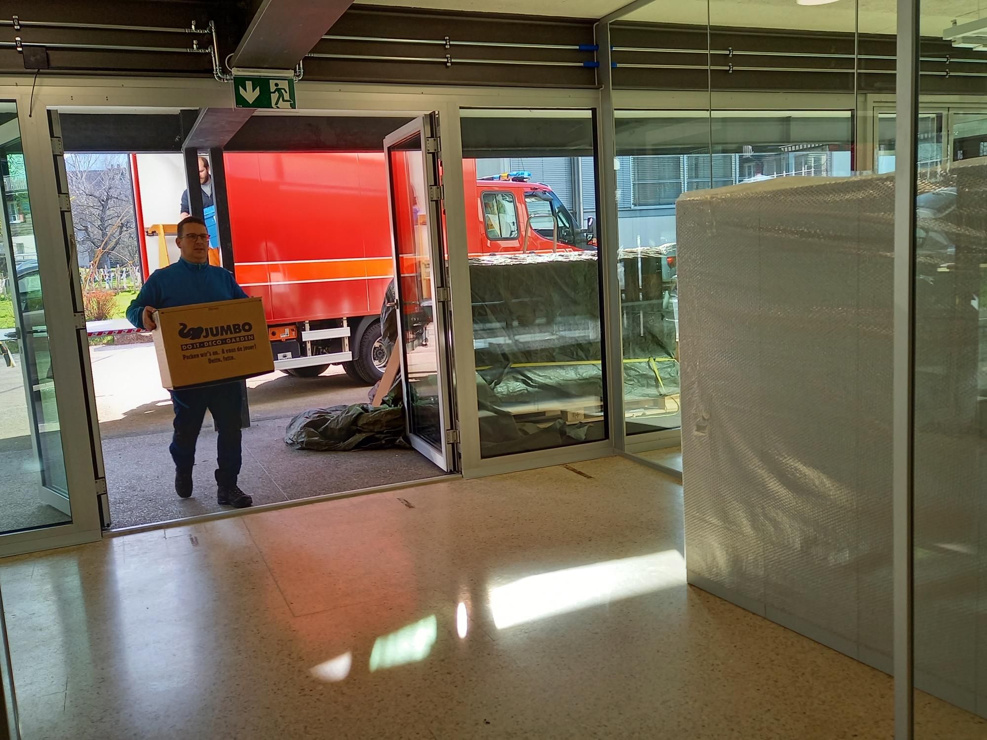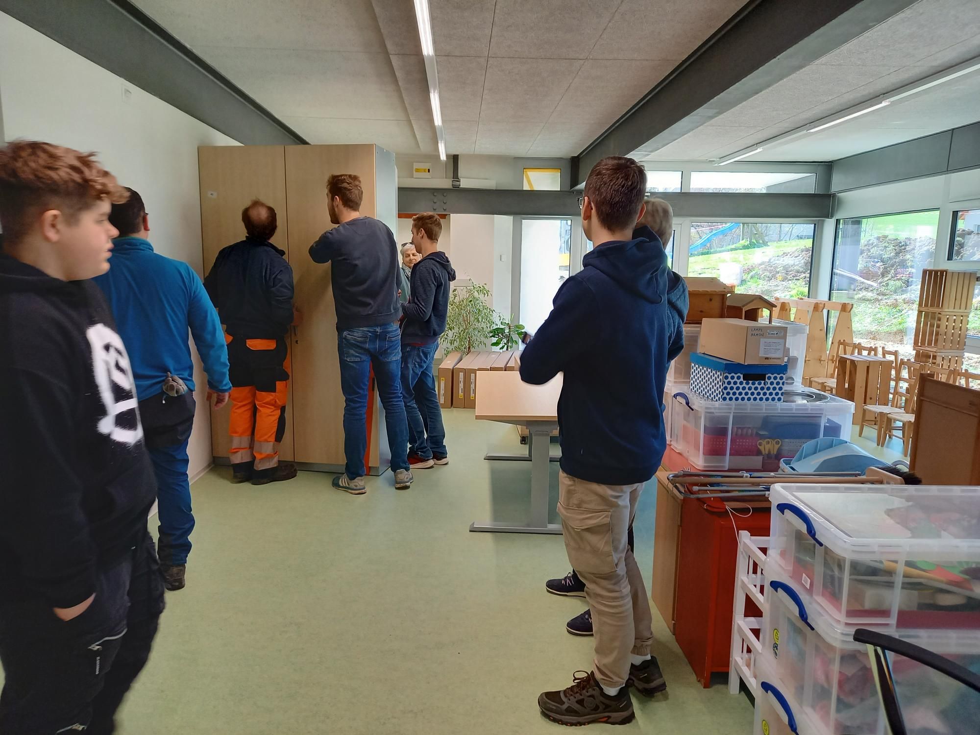 Nach der Zeit der Sanierung ist es heute endlich soweit. Der neue Kindergarten ist bezugsbereit und der Zügeltag kann starten. Ich danke allen Lehrpersonen und ihren Klassen für das Durchhalten während der lärmigen Bauphase. Das Unterrichten war in dieser Zeit herausfordernd.