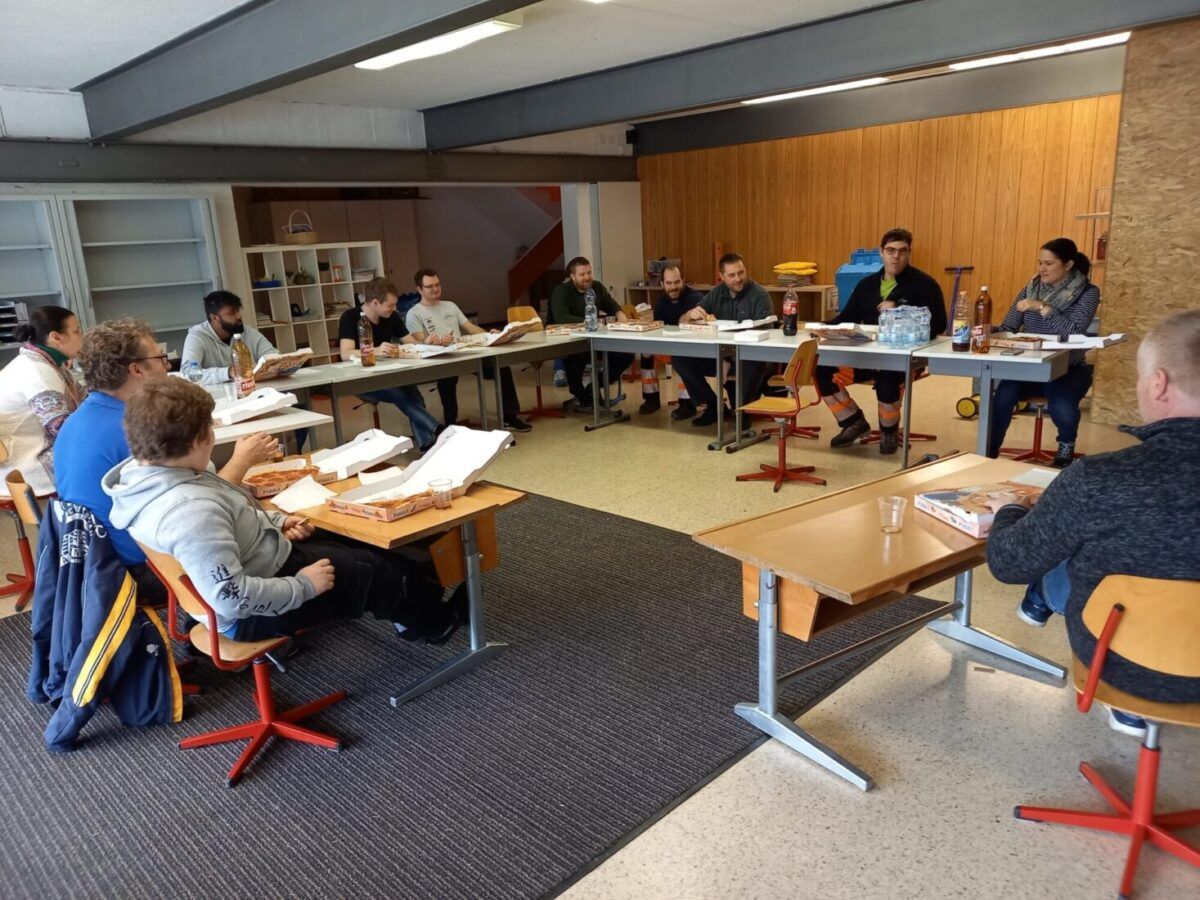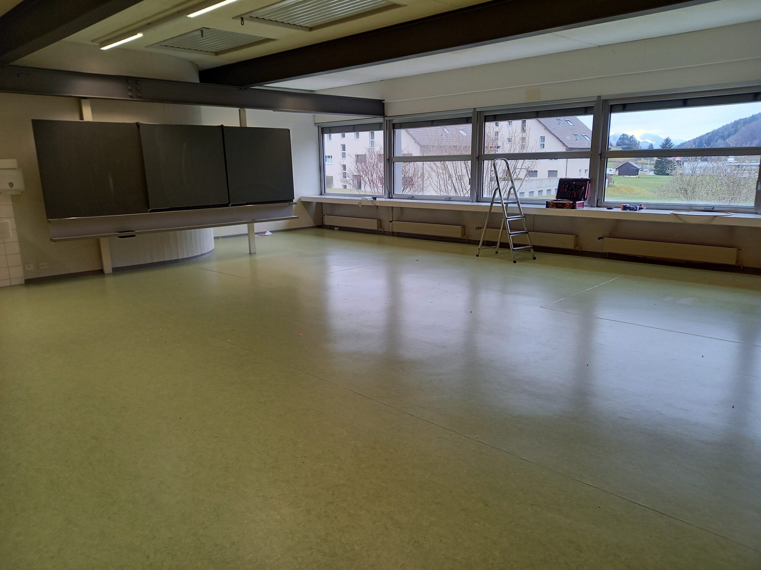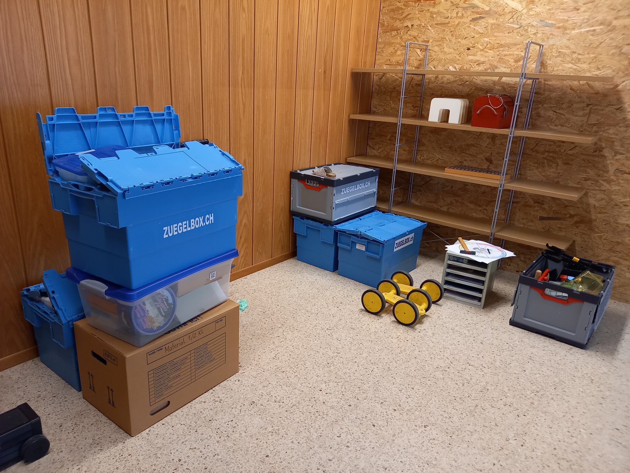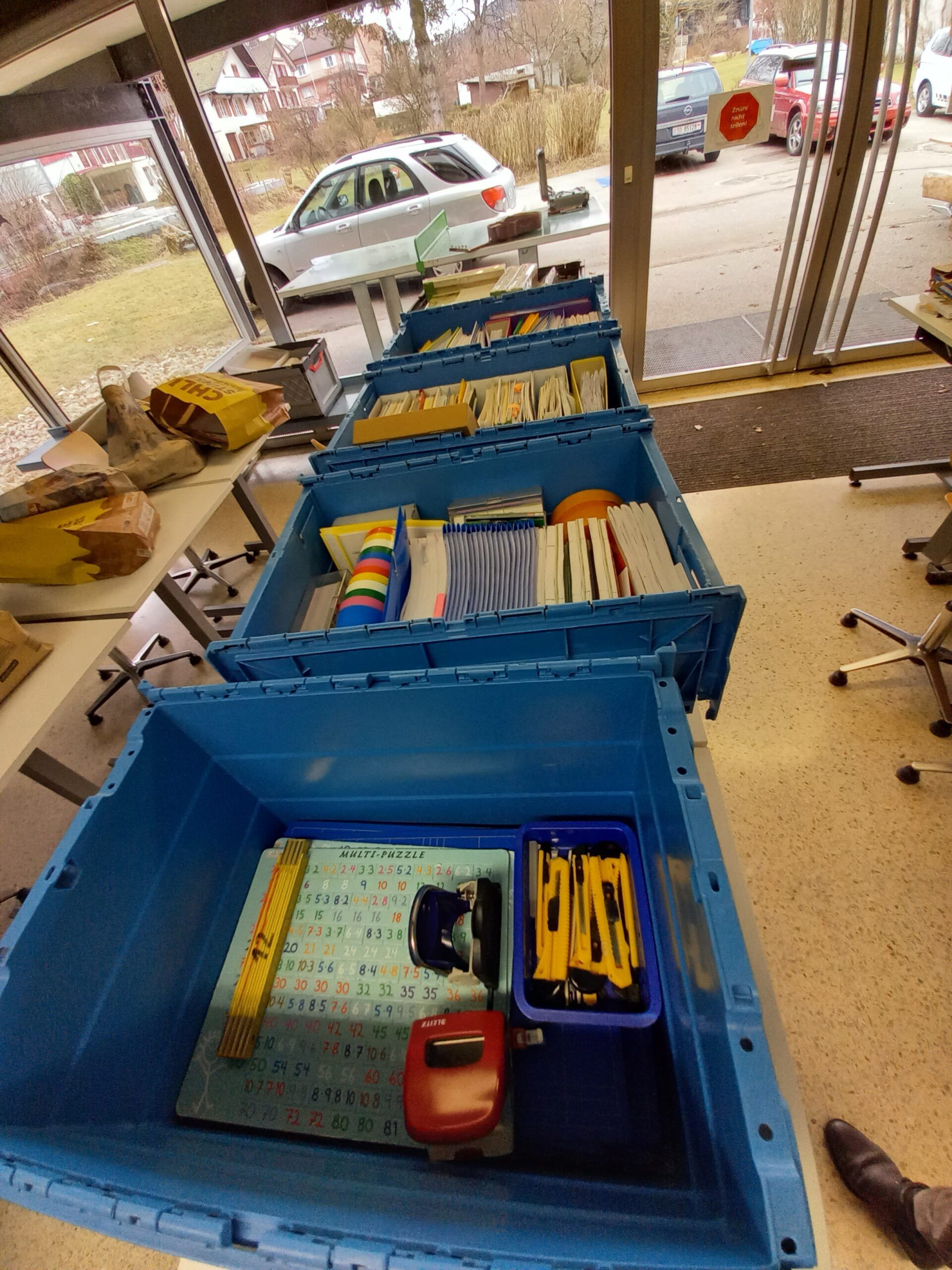 Der Zeitplan kann super eingehalten werden. Nach der Kaffeepause werden die Pulte und Möbel in die unteren Klassenzimmer gezügelt und das Ganze nimmt zusehend Form an. Die Lehrpersonen sind dankbar, dass sie die schweren Sachen gleich am richtigen Ort hingestellt bekommen. Schon bald fühlt man sich in den Provisorien recht wohl.